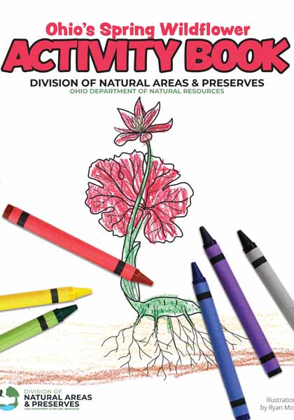 Ohio’s Spring Wildflower Activity Book was created by the Ohio Department of Natural Resources (ODNR), Division of Natural Areas and Preserves. The booklet contains 10 wildflower illustrations designed by Ryan Moss and includes information about the plant, and a word scramble for the plant’s common name.