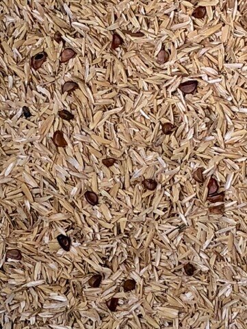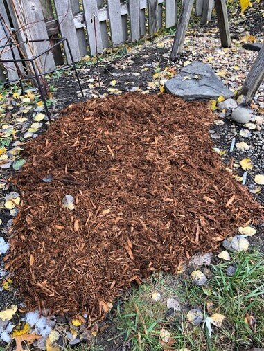 Cover the paper layer with 3-5 inches of aged, clean, pine fines, very small pine bark nuggets, or 50% shredded top soil mixed with 50% pine fines, leaf mold, and/or compost (do not use top soil). Make sure the mulch is CLEAN (no dyes or chemicals to control weeds, and no weed seeds). It’s best if the mulch has been sitting around for a few years and has decomposed a bit, but weed-free compost or triple-shredded hardwood mulch (without dye or chemicals) can be used. - Seeding the Garden
